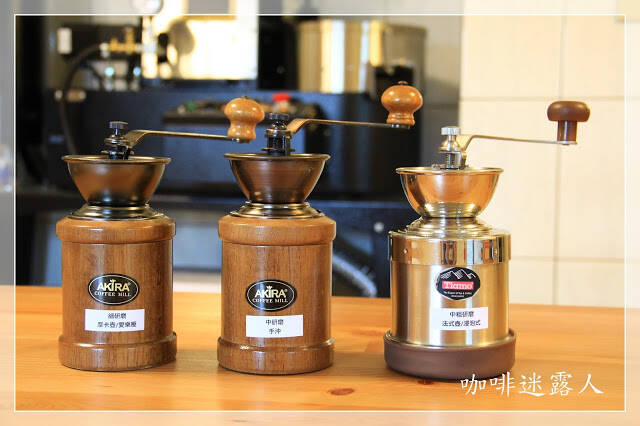 其实使用锥形刀盘式的手摇磨豆机, 加上滤网去除细粉, 可以大幅改善研磨的质量, 这种磨豆机也可以调整粗细度, 配合标示, 多试几次就可以找到最适合不同冲煮方式的粗细度, 手摇磨豆机的研磨度虽然无法做到Espresso用研磨度, 但应用于手冲, 法式壶, 爱乐压, 摩卡壶的冲煮方式都不是问题 手摇磨豆机还有一项优点就是培养耐心, 刚开始学习烘焙咖啡时, 将咖啡熟豆跟许多朋友分享, 周围的朋友也开始自己磨咖啡做手冲咖啡, 有位朋友早上在研磨咖啡时, 小孩因为一件事情跟朋友闹脾气, 朋友边磨着咖啡边静静听小孩的哭闹, 朋友只是边慢慢摇着咖啡, 享受咖啡释放出的香气, 边看着小孩慢慢停止哭闹, 突然觉得自己的脾气变好了, 也更有耐心, 如果是以前早就开始骂小孩了, 我都觉得她的教育小孩变得更有气质了, 难道是受我咖啡的影响吗?