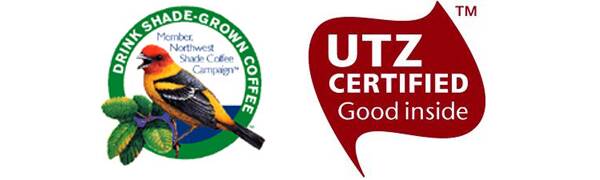 (左)遮荫咖啡Shade Grown Coffee (右)好咖啡认证 (UTZ Organic Shade Grown Coffee)
