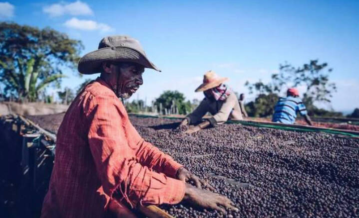 处理法 这支豆子是日晒处理的。 1.采收成熟的咖啡果实 2.初步先挑除杂质与劣质豆 3.筛选浮豆:将咖啡果倒入水槽,成熟饱满的果实会沉入水槽底部,未成熟或有残缺的果实将会浮上水面。 4. 日晒干燥:将沉在水槽底部的成熟咖啡果实捞出,铺在曝晒场中进行日晒干燥,把水分从70%降到10-12%左右。每日需翻动数次使果实均匀风干,夜晚则需覆盖以避免受潮。 5.去除外壳:曝晒约两周至四周的时间后,咖啡种子的外层已干硬,这时再使用脱壳机来去除外壳就完成了。