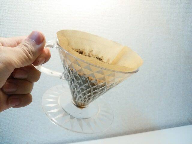 这样,首先在咖啡的提取过程中会出现不均匀,这将成为失败的一个因素。折叠过滤器后,让它散开,放在滴头上。