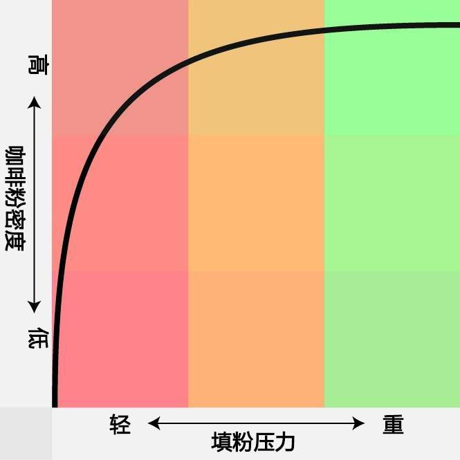 如图所示,你填压的时候,压力的小小差异会造成咖啡粉密度的巨大不同。而使用中度或者"标准"的压力填压时,可以削弱这个效应,如果非常用力地压粉,这个效应几乎就可以忽略不计。而超过了某个点之后,不管再多用力地填压,密度都不会改变。这就是我为什么要这么用力填压--这个将这个影响咖啡粉密度的变量从测试中排除掉。我想要测试的是一个方法布粉的优劣。要达到这个目的,我需要每次测试都得到一样体积的咖啡粉饼然后称量。而这个体积中咖啡粉的质量就就能够说明咖啡粉分布的均匀程度。前文已经提到我会在每个手柄中都多加0.5-1g的咖啡粉。这样粉碗中的咖啡粉就是过量的,为了得到一样体积的咖啡粉饼,我使用了一个高精度的水平铲刀,而刮刀的深度取决于粉碗的边缘,也就是说,转到刮刀会非常平整地刮出一定深度(0.5-1mm)的咖啡粉。最后,我会称量粉碗中剩余的咖啡粉。