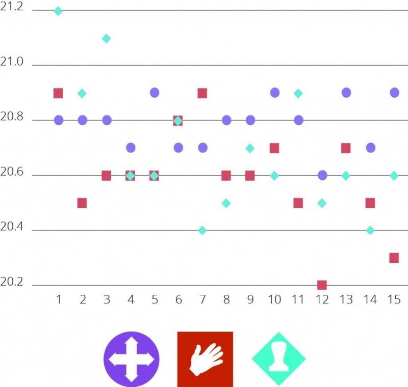 过量的咖啡粉在总质量占比不超过5%,从这个简单的实验,我可以快速简单的测量出多个粉碗中剩余的咖啡粉量,从而总结出一致性。 测试结果 以下是三种布粉方法的测试结果,每种方法15个样品。