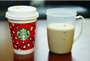 加完浓缩咖啡后,接着就是用牛奶加满杯子, 小杯、中杯、大杯拿铁分别倒入量杯后,小杯拿铁实测225ml,中杯实测325ml,大杯实测400ml。如果加上奶泡的厚度,大杯也只有425ml,比473ml要少约50ml。