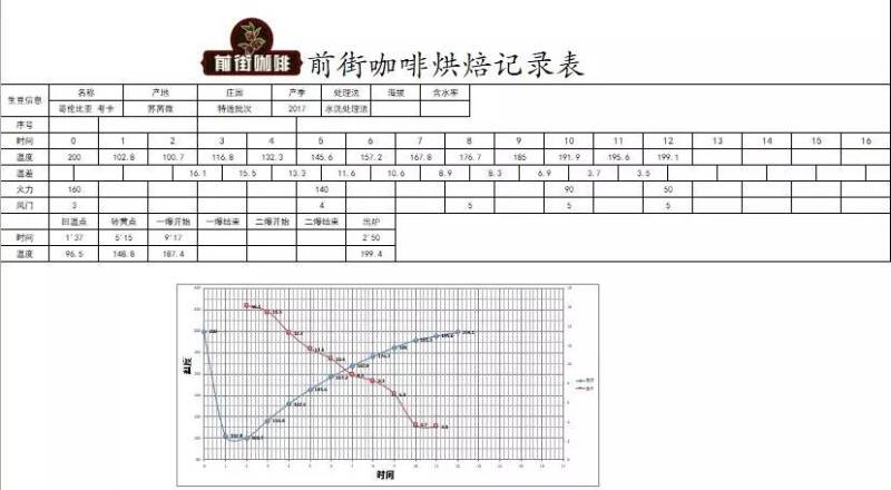 第8'55"脱水完毕 ,火力降至185度,9'10"时豆表出现丑陋胡皱褶和黑斑纹,烤面包味明显转为咖啡香,可以定义为一爆的前奏,这时候要听清楚一爆爆点的声音,到9'17"开始一爆,调小火力至90度,风门全开5(调火力要非常小心,不可小到无爆裂声),一爆后发展2'50",199.4度下锅。 这款哥伦比亚 考卡水洗青柠酸比较明显,葡萄汁酸感,丰富的花香,较高的酸度,宜人的甜度,中等醇度,后段有坚果余韵,整体纯净、温和、质感顺滑,味道均衡活泼多变的层次感。 05丨冲煮分析