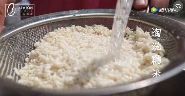 ❥制作咖啡米,将萃取好的咖啡液倒入糯米中,使其浸泡2-4小时