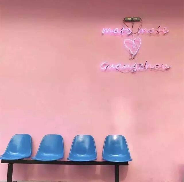 店门口的这面粉色墙配蓝色椅,就是是很多妹子必来的打卡点。