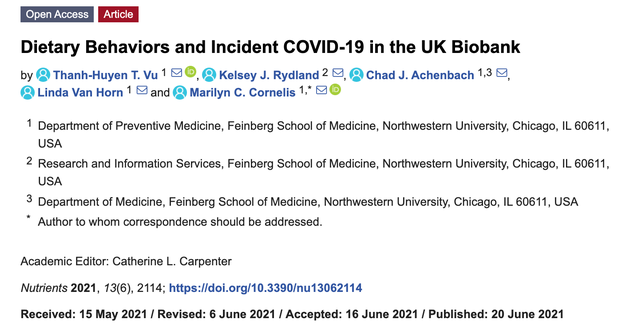 其实早在2021年7月,美国西北大学的预防医学教授Marilyn Cornelis也在《Nutrients》杂志上发表了一项名为关于咖啡与新冠预防的研究(Dietary Behaviors and Incident COVID-19(新冠) in the UK Biobank)。研究结果指出,每天至少喝一杯咖啡可以将患新冠病毒的风险降低10%,而食用加工肉类则会增加感染风险。