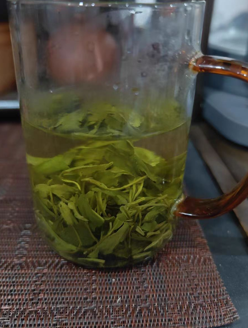 从茶叶的外观来看,泰山女儿茶干茶条索曲卷紧实,呈深墨绿色,散发着宜人的清香。冲泡后,茶汤清澈透亮、绿意荡漾,芽叶逐渐由深绿转新绿。其香气独特,具有浓厚的泰山板栗香气,所以也被人称为 “茶中板栗”。在口感上,汤味醇滑,饮用之后口中留香,令人回味无穷。