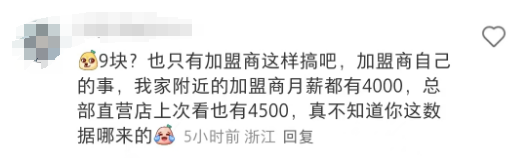 话说回来,通常类似岗位在市场上的薪资水平和工作休息制度,都是有一定标准的。可幸运咖这位员工月薪 2300 元、月休 1 天的状况,明显远远偏离了合理范畴,工作强度大得离谱,薪资却连基本体面的生活都难以维持。对于幸运咖员工月薪 2300 元只休 1 天这件事,网友们也发表了各自的看法。有网友质疑道:“9 块?也只有加盟商这样搞吧,加盟商自己的事,我家附近的加盟商月薪都有 4000,总部直营店上次看也有 4500,真不知道你这数据哪来的。”